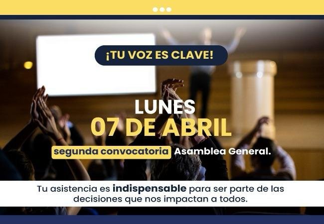 ¡Tu voz y tu voto son esenciales! Cada asociado es parte fundamental de esta comunidad, y contar con tu asistencia garantizará que tomemos decisiones representativas y alineadas con nuestras necesidades.